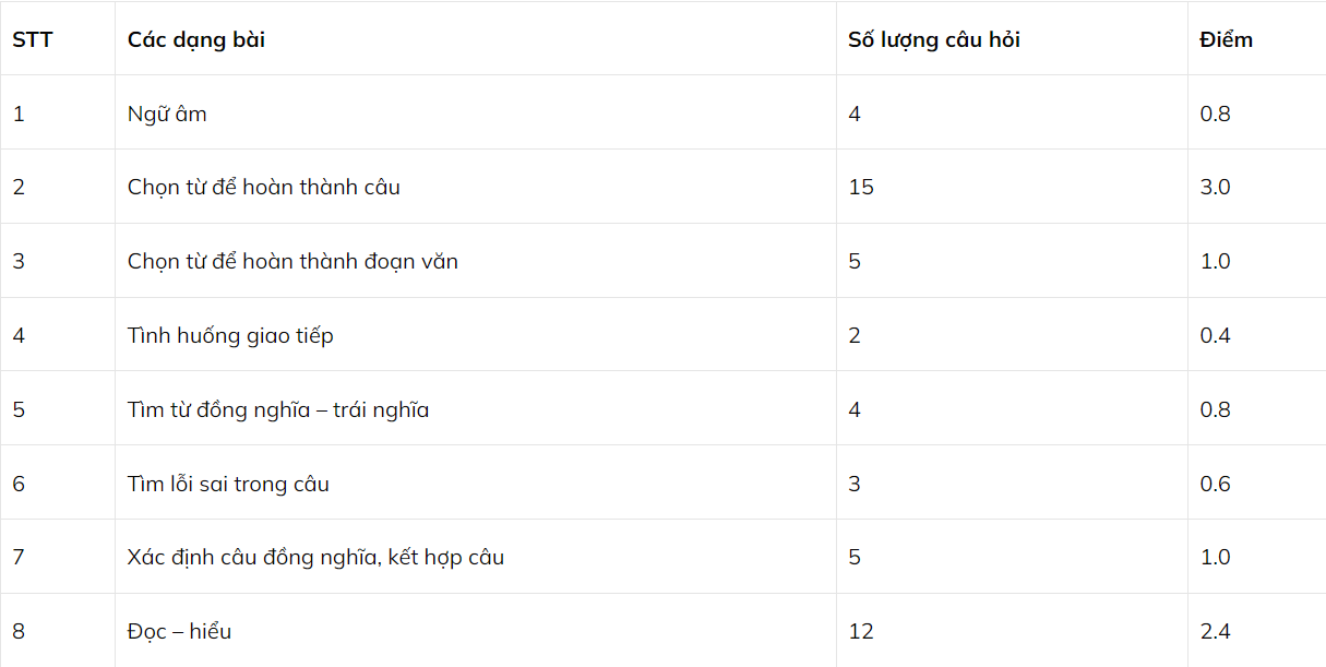 Cấu trúc đề thi môn Tiếng Anh