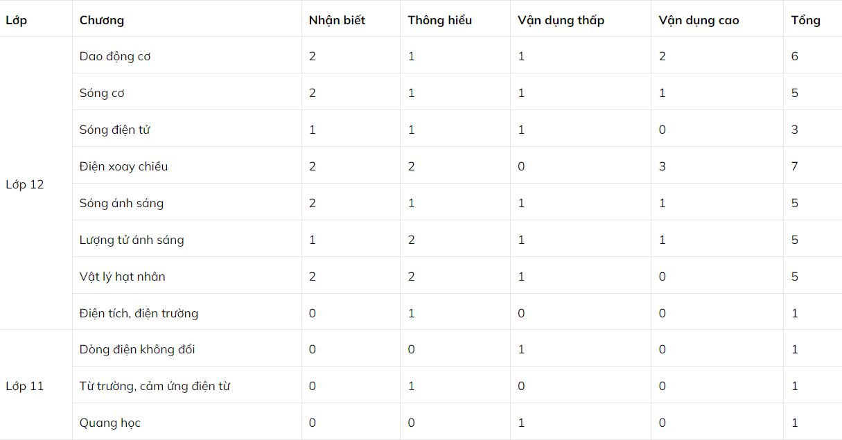 Cấu trúc đề thi môn Vật Lý