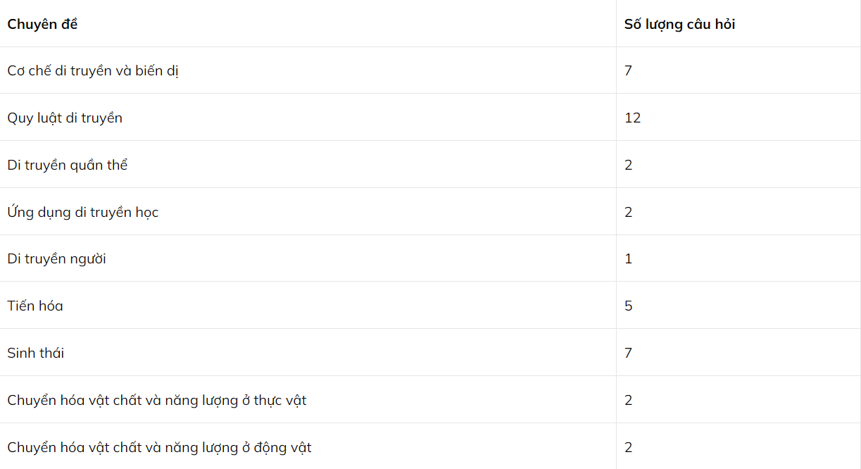 Cấu trúc đề thi môn Sinh học