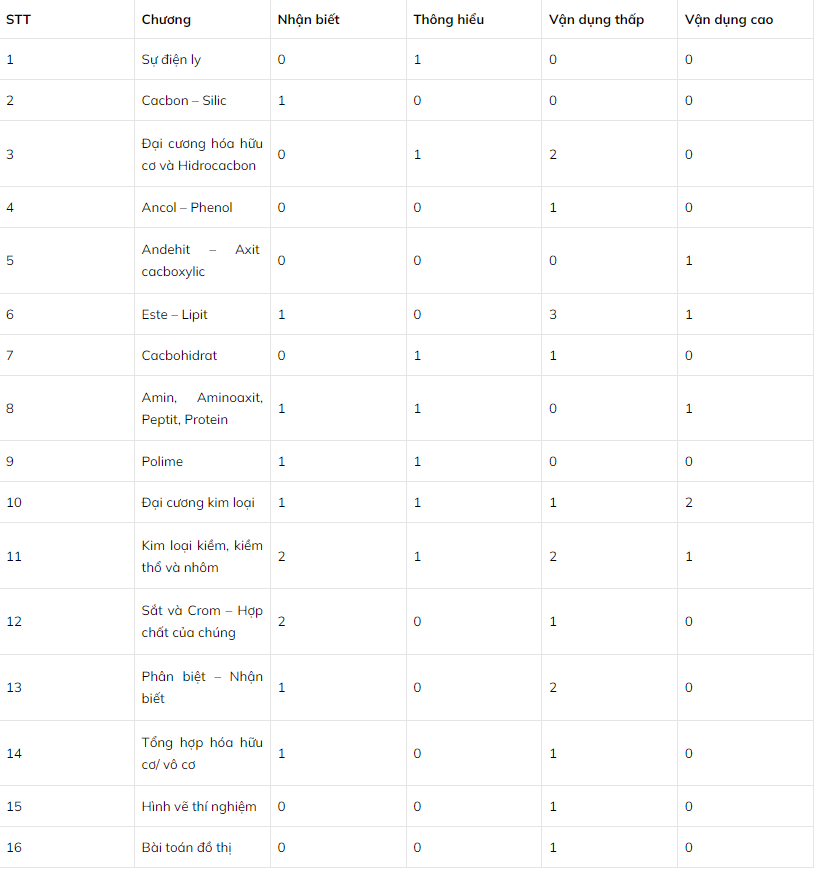 Cấu trúc đề thi môn Hóa học
