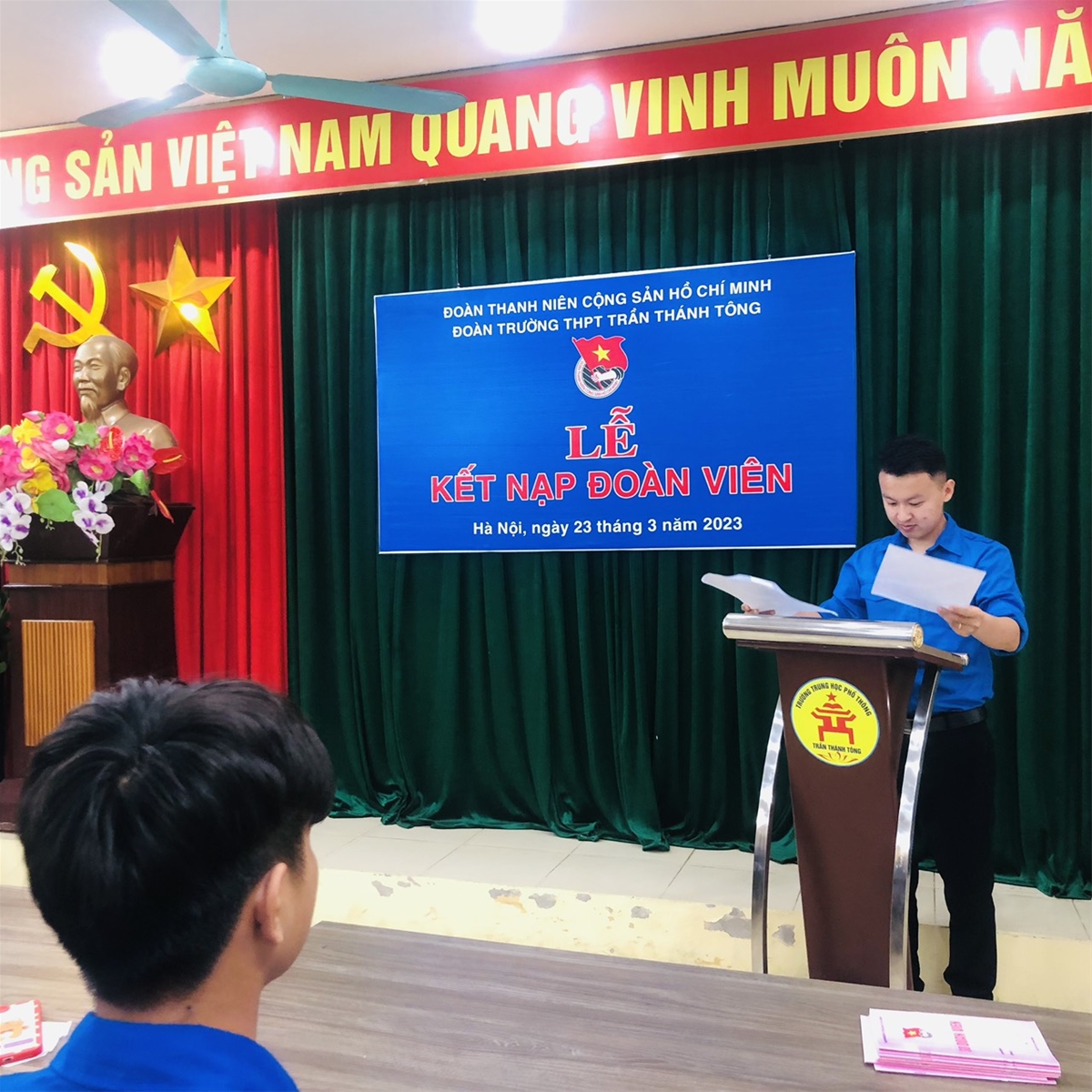 Đoàn TNCS HCM trường THPT Trần Thánh Tông đã tổ chức lễ kết nạp đoàn viên 2023 mẫu cho các chi đoàn khối 10 và 11. Kết nạp cho những thanh niên ưu tú được đứng trong hàng ngũ của Đoàn