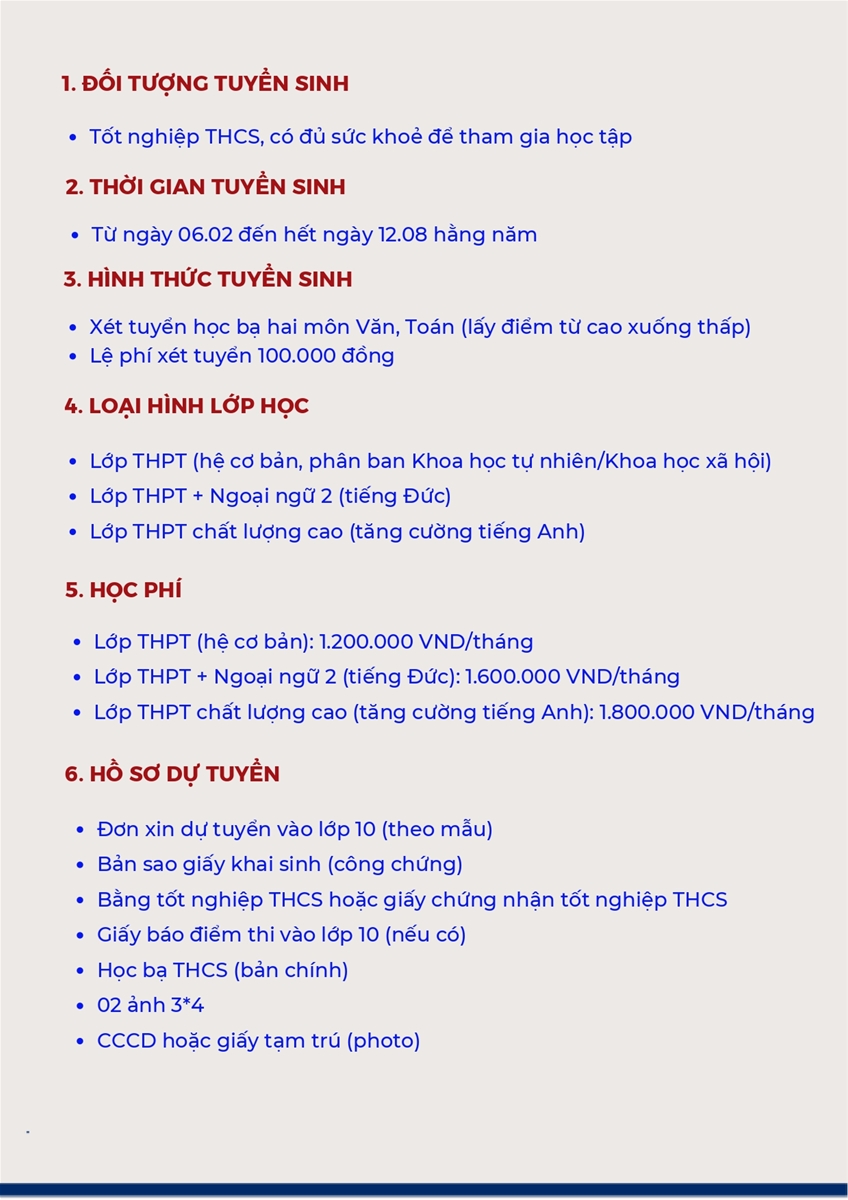 - THPT + Ngoại ngữ 2 (tiếng Đức): 1.600.000 đồng/tháng